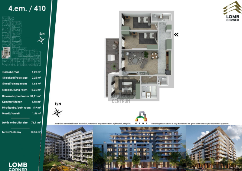 Az emeleteken a lakások tájolása Kelet-Dél-Nyugat, minden lakás bevilágítása, tájolása optimális.