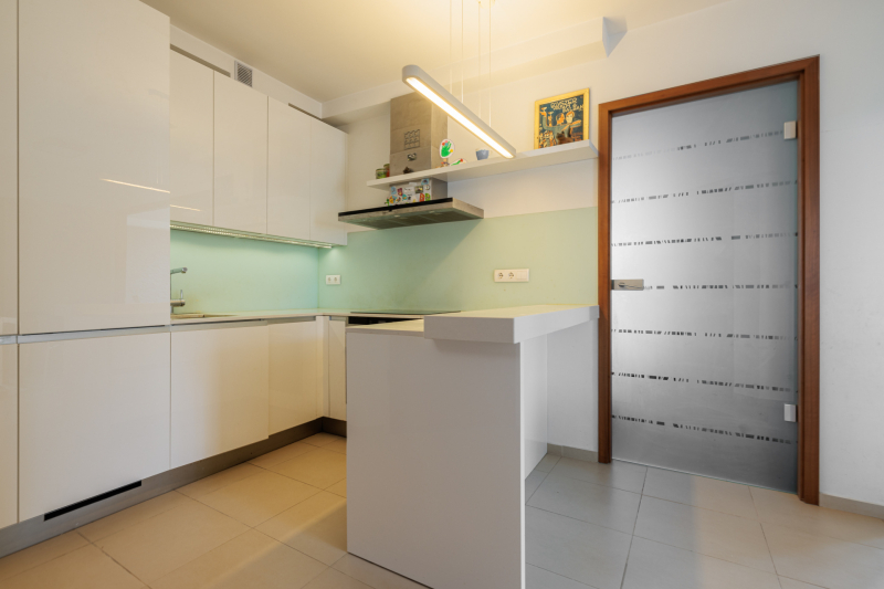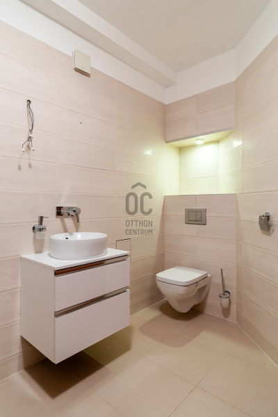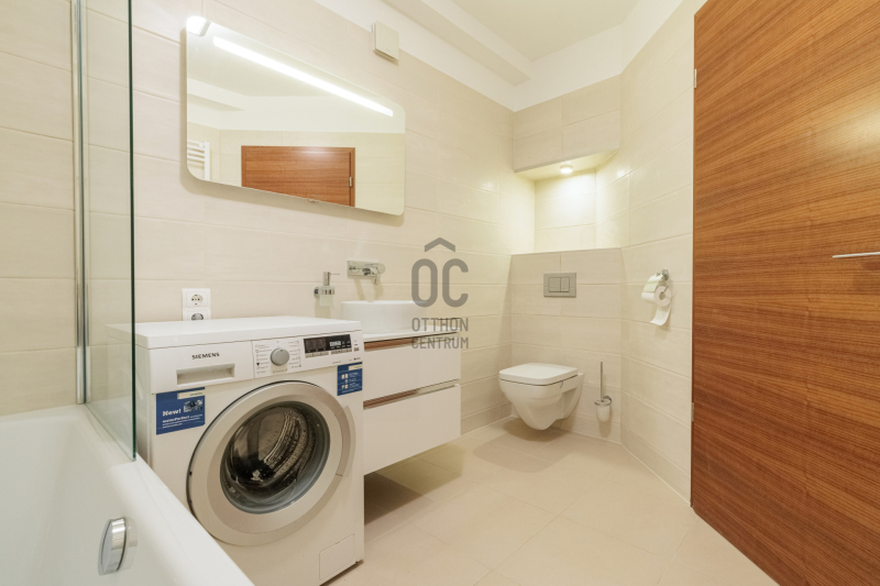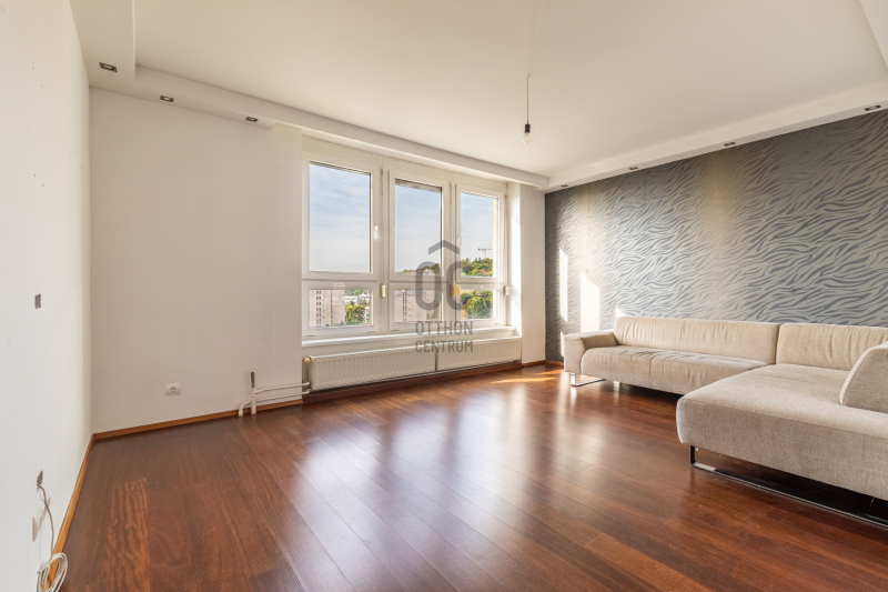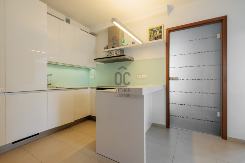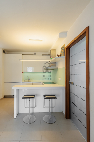 A lakást prémium minőségű anyagokkal újították fel a tulajdonosok saját részre: gránit konyhapult, sucupira fa parketta, magasfényű fehér Sykora konyhabútor és Siemens konyhagépek, illetve a Mitsubishi klíma mind az esztétikus, modern, és funkcionálisan is átgondolt megoldásokat tükrözik.