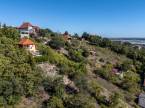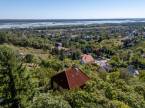 - látkép a Velence és Sukoró közti völgyre, családi házas telkekre, balra a Velencei-tóra, jobbra a beépítési határ felett ívelő erdőre