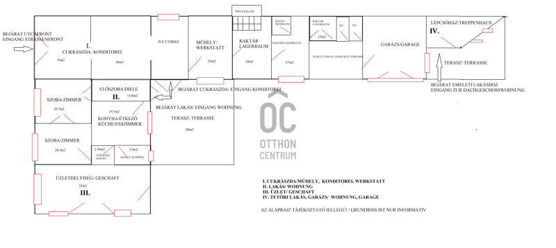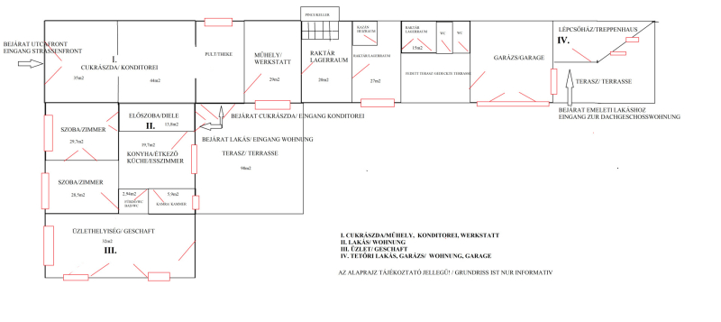 - üzlethez kapcsolódó helyiségek: előkészítő műhely, pince, sütő,hűtőkamra, raktár (udvari bejárattal is rendelkezik), összesen 80nm