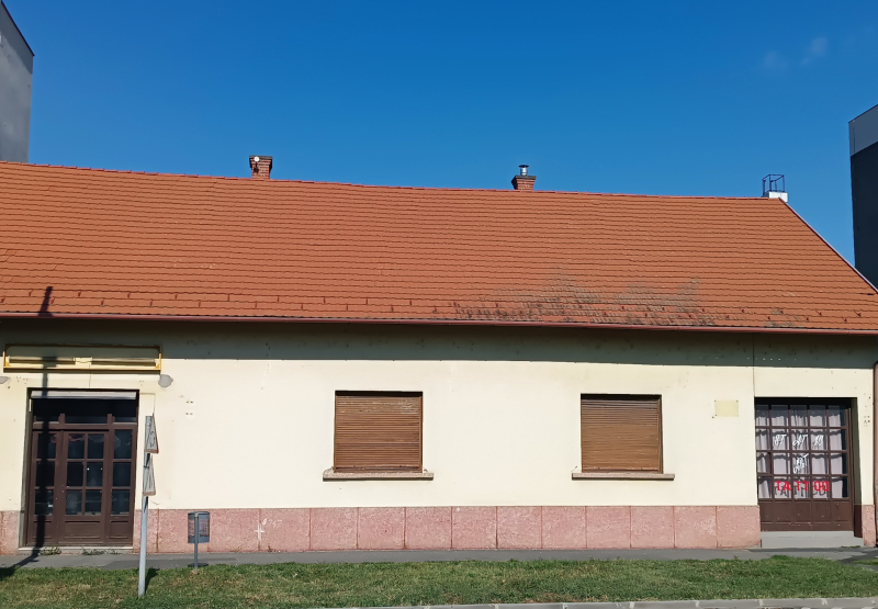 - földszintes tégla épület, tágas terekkel