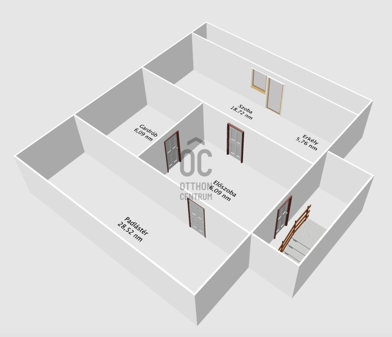 - stabil, masszív lépcsőszerkezet vezet az emeletre