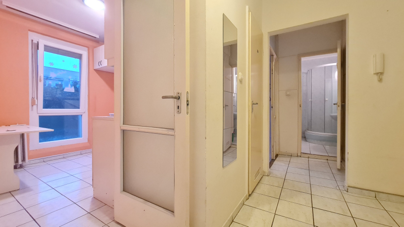 -nappali, konyha, előszoba és a fürdő járólappal burkolt, a háló padlószőnyeges