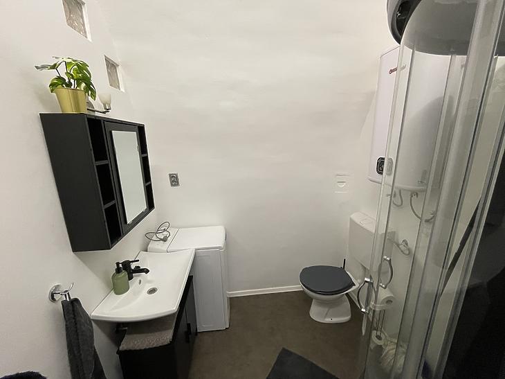 A lakás gépesített és teljesen bútorozott, így valóban csak egy bőrönd kell, és már költözhetsz is. A berendezés része többek között a villanytűzhely, mosógép, illetve egy masszírozós zuhanykabin, ami különösen kényelmessé teszi a mindennapokat.