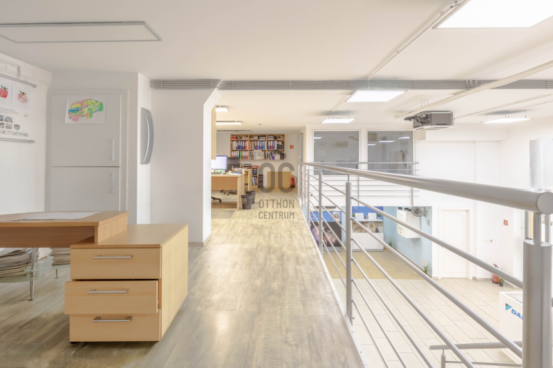 - Felosztása a galérián: egy légterű iroda, tárgyaló, raktár.