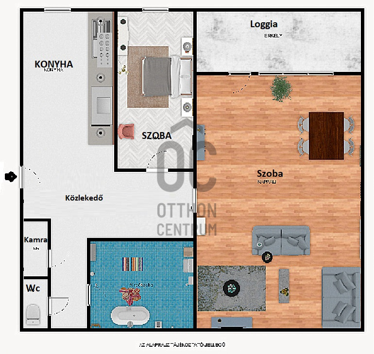 Alaprajzát tekintve: külön és egybe is nyitható szobák, külön mellékhelyiség, külön kamra és egy nagy loggia, ami mind a benne lakók kényelmet szolgálja.