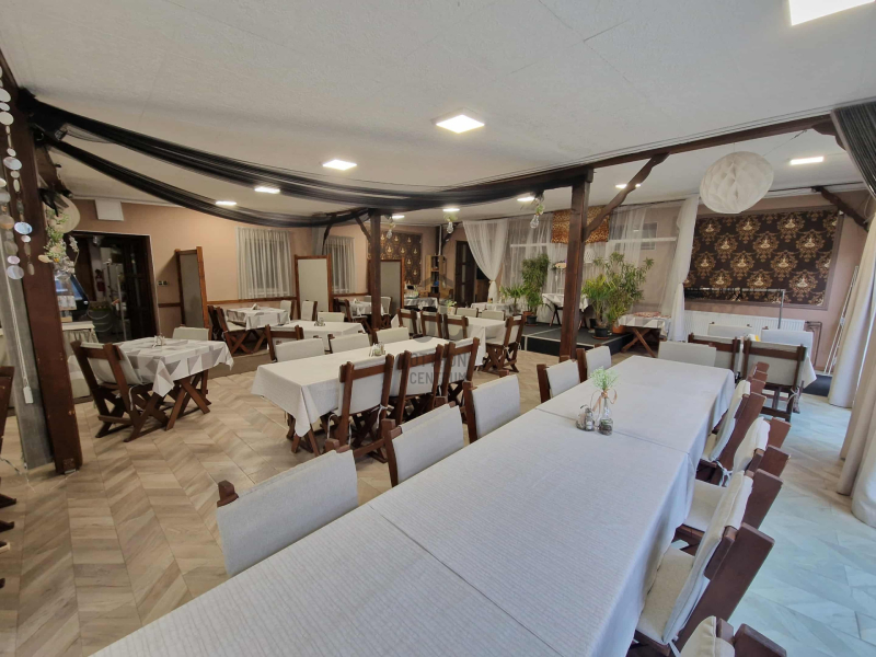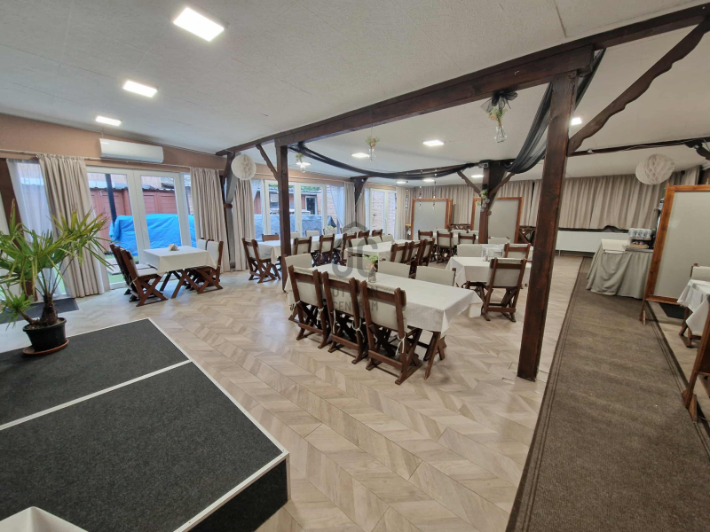 Az ingatlan tágas, 37 és 120 m²-es étkezővel és rendezvényteremmel rendelkezik, emellett konyhai és raktárhelyiségek is kialakításra kerültek.