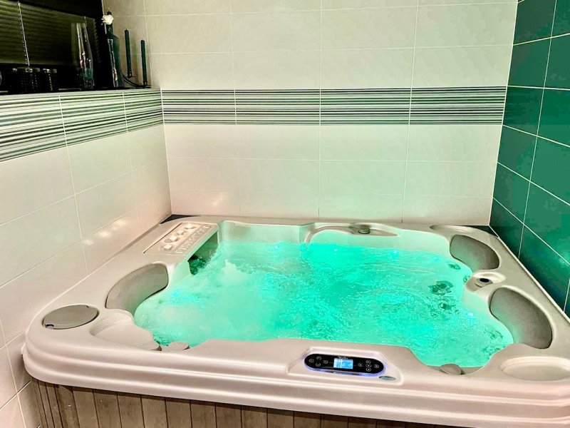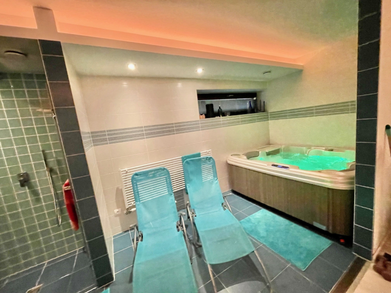 A pinceszinten egy szaunával, jakuzzival rendelkező fitness-wellness részleg található.