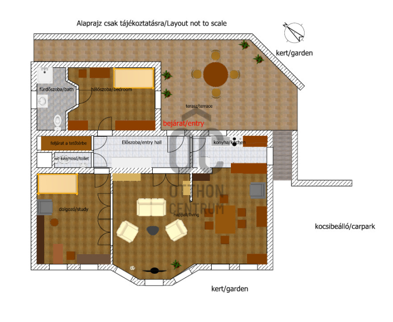 - üvegajtóval kapcsolódik hozzá a dolgozószoba,