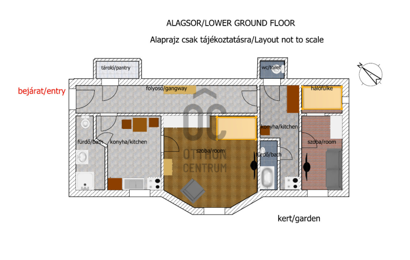 - az alagsorban két önálló kis lakás, a belmagasságuk 2,1 m, egyszobás és egyszoba háló fülkés beosztással,
