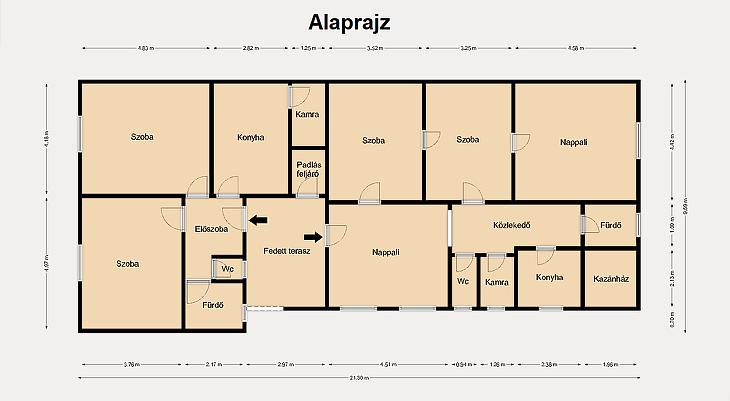 • Jó állapotú első házrész, felújítandó hátsó rész