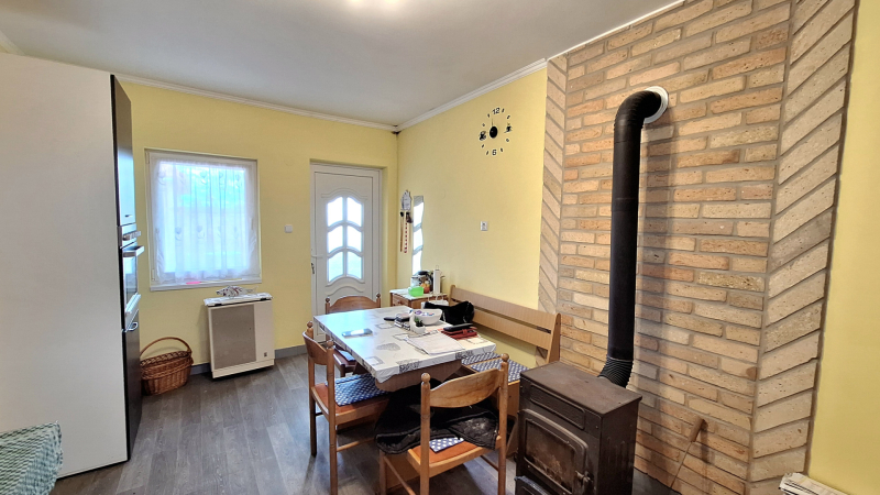-a fűtésről gázkonvektor gondoskodik és egy vegyes tüzelésű kályha