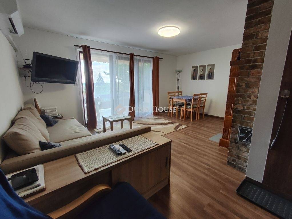 Nappalival, egy nagyobb és egy kisebb hálóval, zuhanyzós fürdővel és csinos konyhával, terasszal.