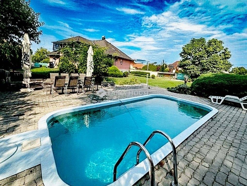 Az épület az 1990-es években épült, 10 cm-es szigetelés, műanyag nyílászárók és napelemrendszert is tartalmaz. A garázsban egy működési engedéllyel rendelkező mini sütőüzemet is kialakítottak. A családi házban egy hatalmas, világos, süllyesztett nappali található, mely közvetlen kapcsolattal rendelkezik a terasszal és a gondozott kerttel. Ezen kívül a földszinten megtalálható egy tágas, nagy kiadóablakos étkező és konyha, négy hálószoba, egy gardróbszoba, valamint két fürdőszoba, melyek közül az egyik zuhanyzós WC-vel, a másik pedig kádas és zuhanyzós, külön WC-vel van felszerelve. Az emeleti részen négy db egyforma apartman áll rendelkezésre, mindegyik saját fürdőszobával, WC-vel, nappalival, konyhasarokkal és terasszal, valamint az emelet teljes berendezése is a vásárlás részét képezi, így az ingatlan azonnal kiadható vagy turisztikai célra hasznosítható. A pinceszint tárolóként, pinceként funkcionál, de lehetőség van wellnessrészleg vagy további szobák kialakítására is.Amennyiben felkeltettem érdeklődését, úgy várom megtisztelő hívását.