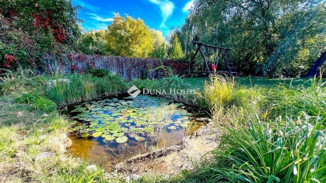 A telek maga 1152 méteres, saroktelek, mely rengeteg lehetőséget rejt magában. A kertben megtalálható egy kerti tó, medence, kerti kiülő, valamint parkolóhelyek a telken belül. A locsolás fúrt kútról történik, ezáltal a fenntartás költséghatékony. Műszaki szempontból a ház rendkívül jól felszerelt: kandalló, három db hűtő-fűtő klíma, gázkazán a radiátoros fűtésért, melegvíz-ellátás gáz- és villanykazánnal, valamint napelemek biztosítják az energiaellátást.
