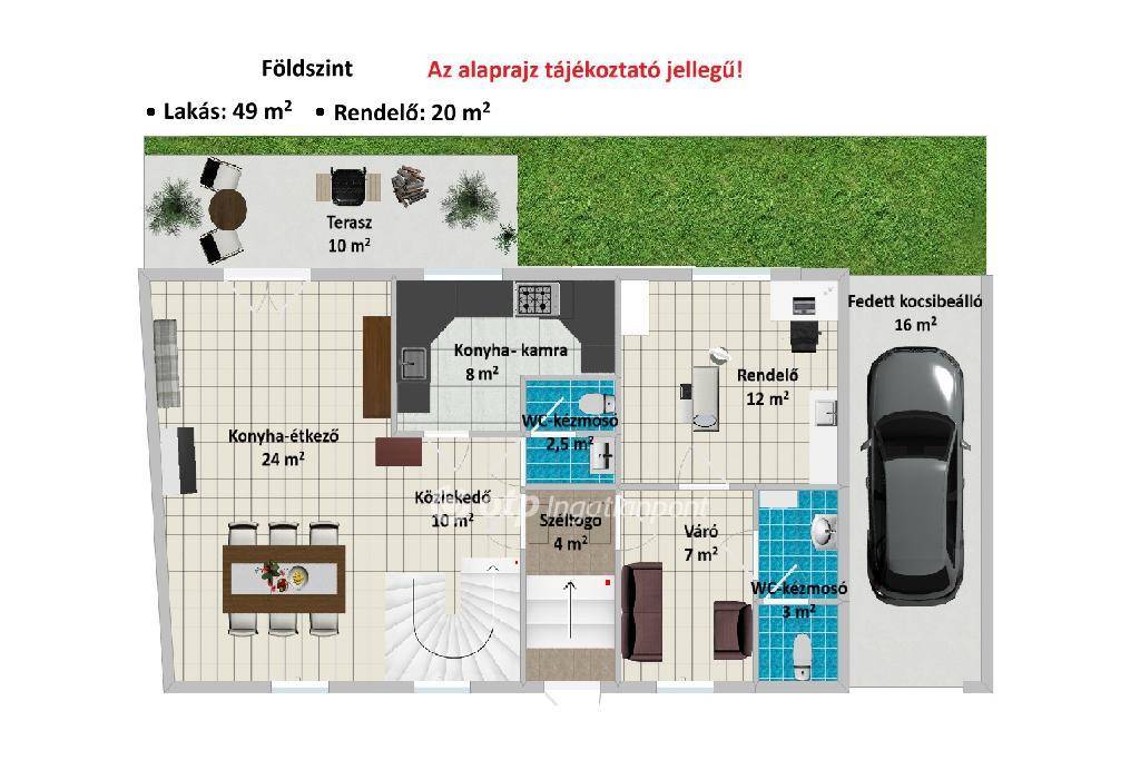 Az ingatlanban jelenleg egy külön bejáratú fogorvosi rendelő is működik, amely könnyedén átalakítható apartmanná, irodává vagy más üzlethelyiséggé, így lakó és vállalkozási cél egyaránt megvalósítható.