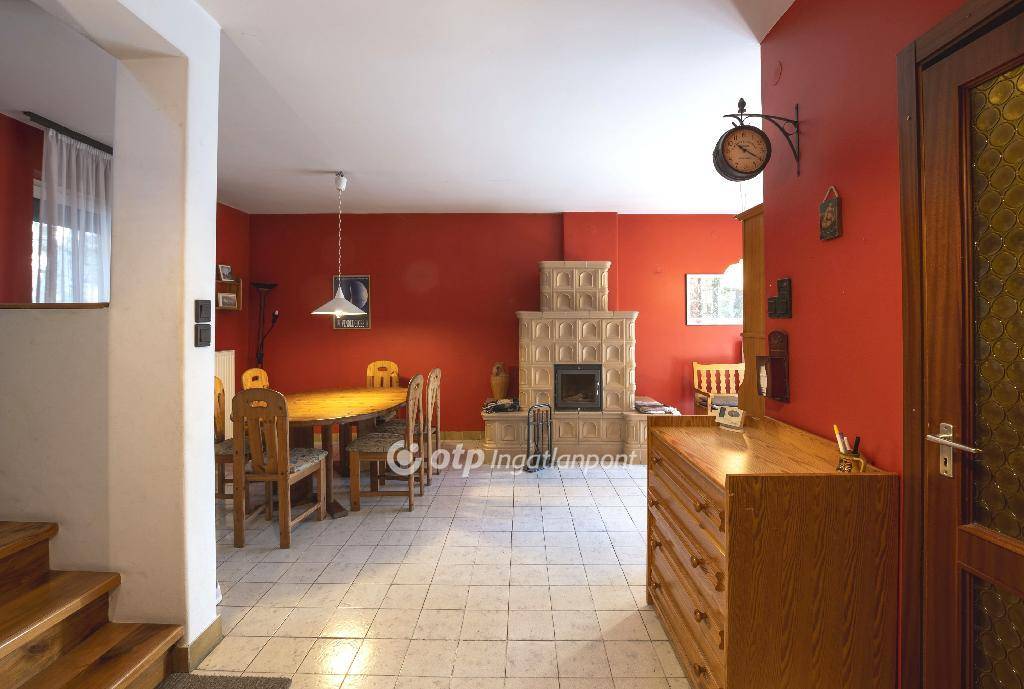 A biztonságról kiépített riasztórendszer gondoskodik, míg az étkező hangulatát egy működő cserépkályha teszi otthonossá. A hálószobában beépített szekrény és klímaberendezés növeli a kényelmet, a két szintet pedig egy impozáns, diófából készült lépcső köti össze.
