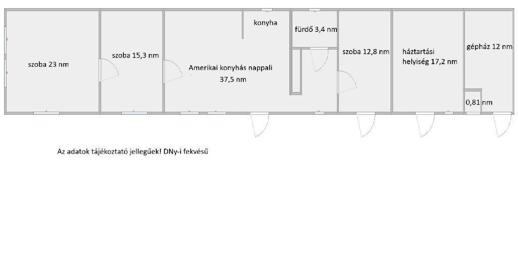 Az amerikai konyhás nappalihoz három szoba és egy félszoba tartozik, emellett fürdőszoba WC-vel, háztartási helyiség, tároló és gépház is kialakításra került. A háztartási helyiség igény szerint újabb szobává alakítható.