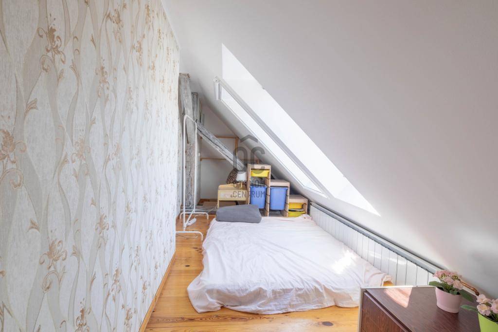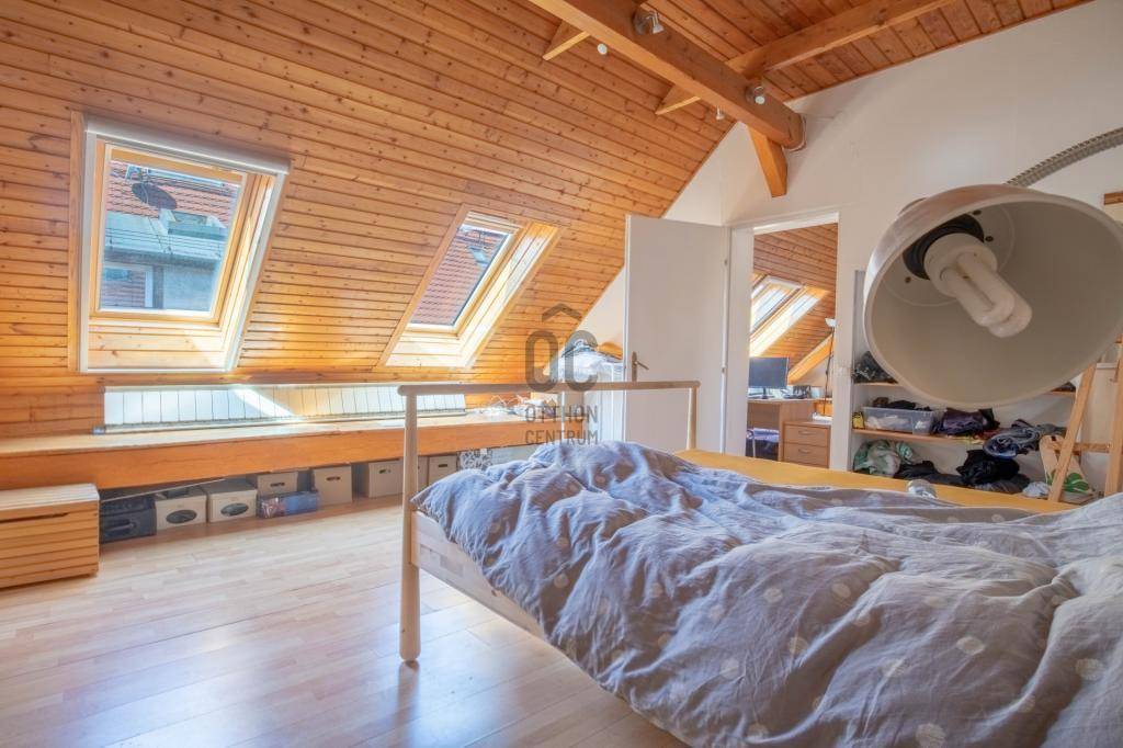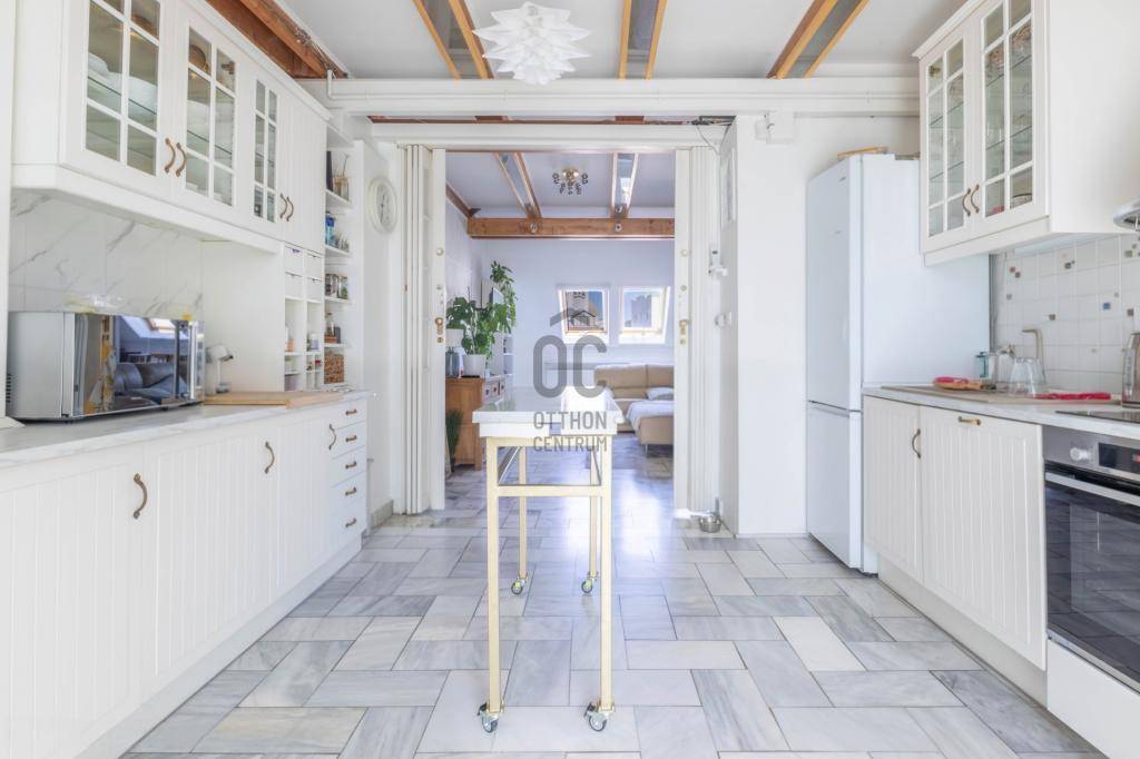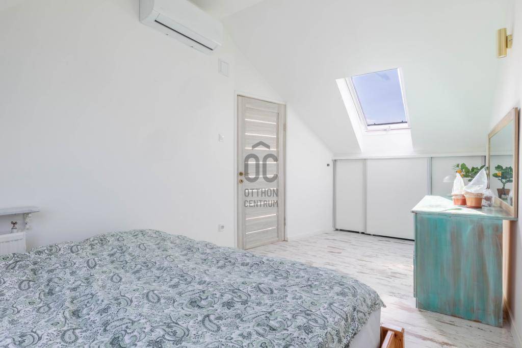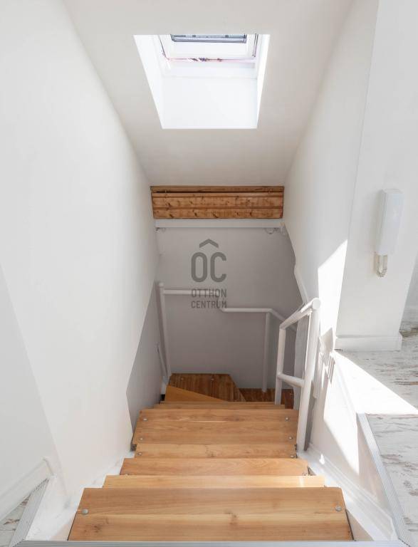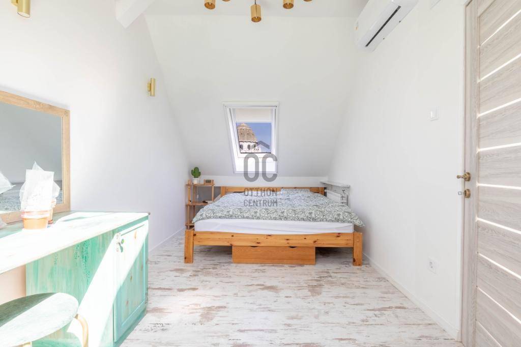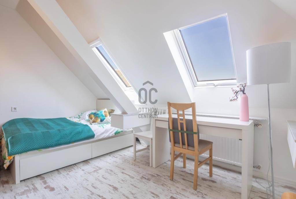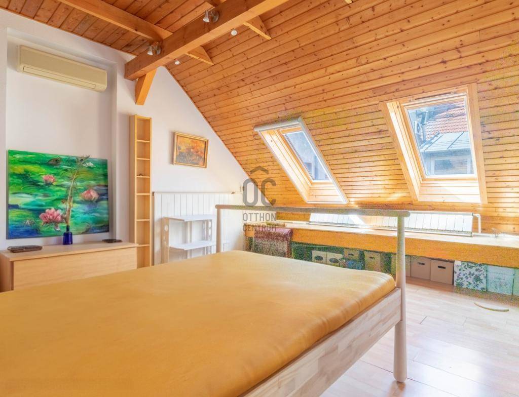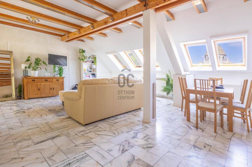 - Tetőtérben helyezkedik el, teljes alapterülete 267 m2, tulajdoni lapon 158 m2-es lakás két lakrészre osztva.
