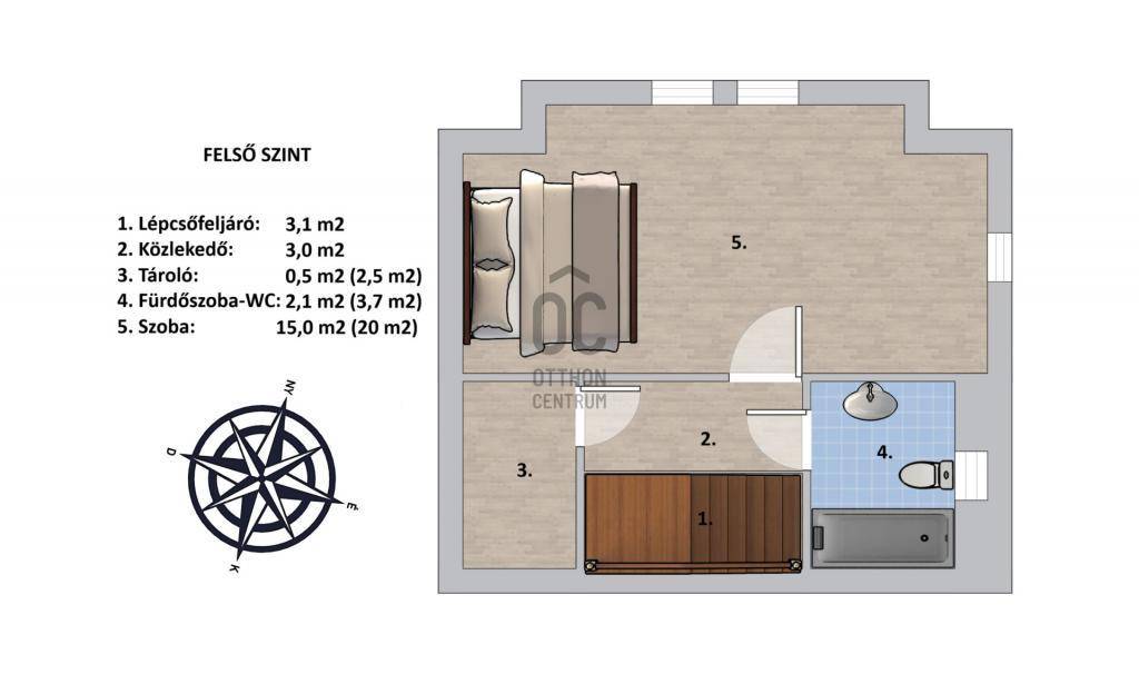 - A felsző szinten található szoba igény esetén két szobára szétválasztható.