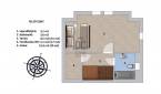 - Az alsó szint felosztása: előszoba, nappali-konyha-étkező, szoba, fürdőszoba-WC.