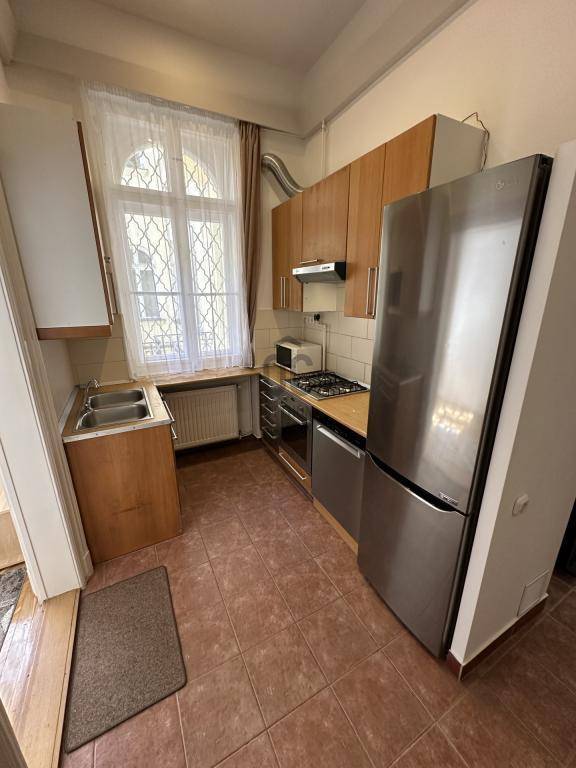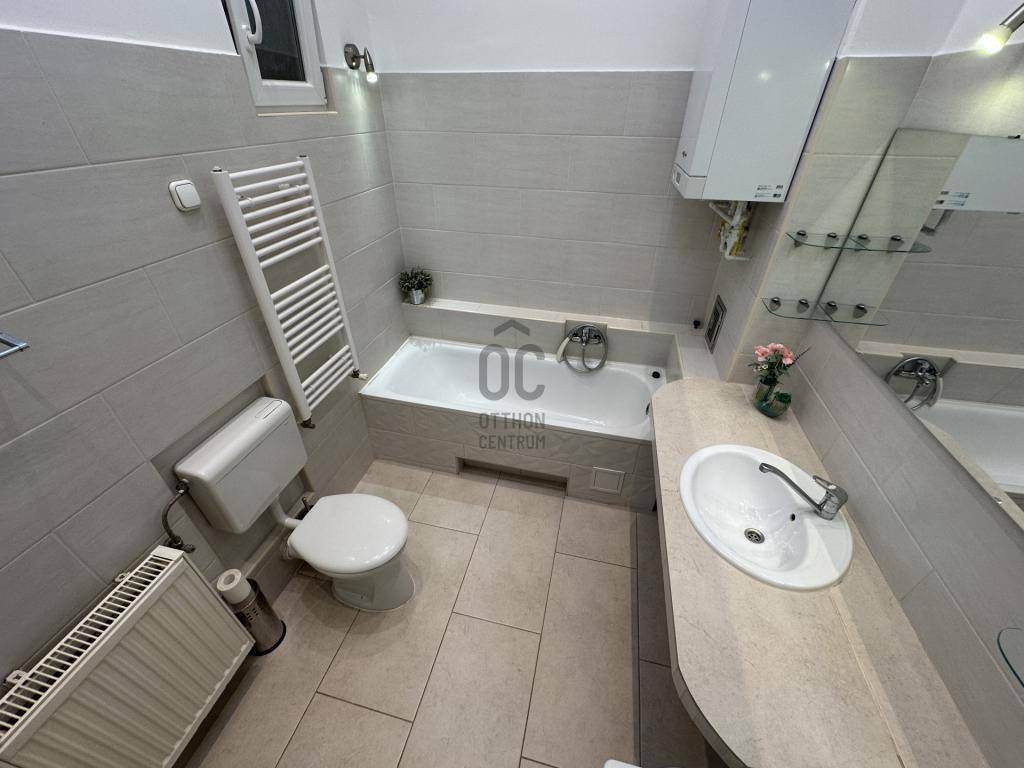 -Berendezett konyha: gáztűzhely, elektromos sütő, mosogatógép, hűtő/fagyasztó.