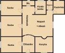 Helyiségei: nappali, konyha + étkező, 3 szoba, fürdőszoba, WC, kamra, kazánház és közlekedő.