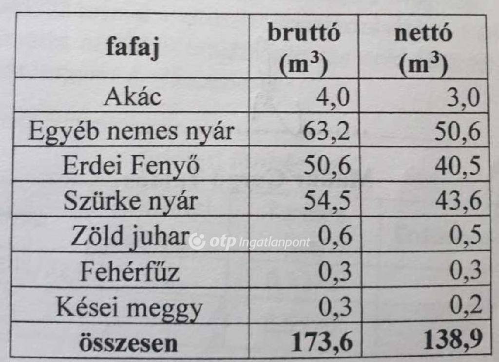 - Egyéb nemes nyár: 63,2 m3 (nettó 50,6 m3)