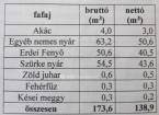 - Erdei fenyő: 50,6 m3 (nettó 40,5 m3)