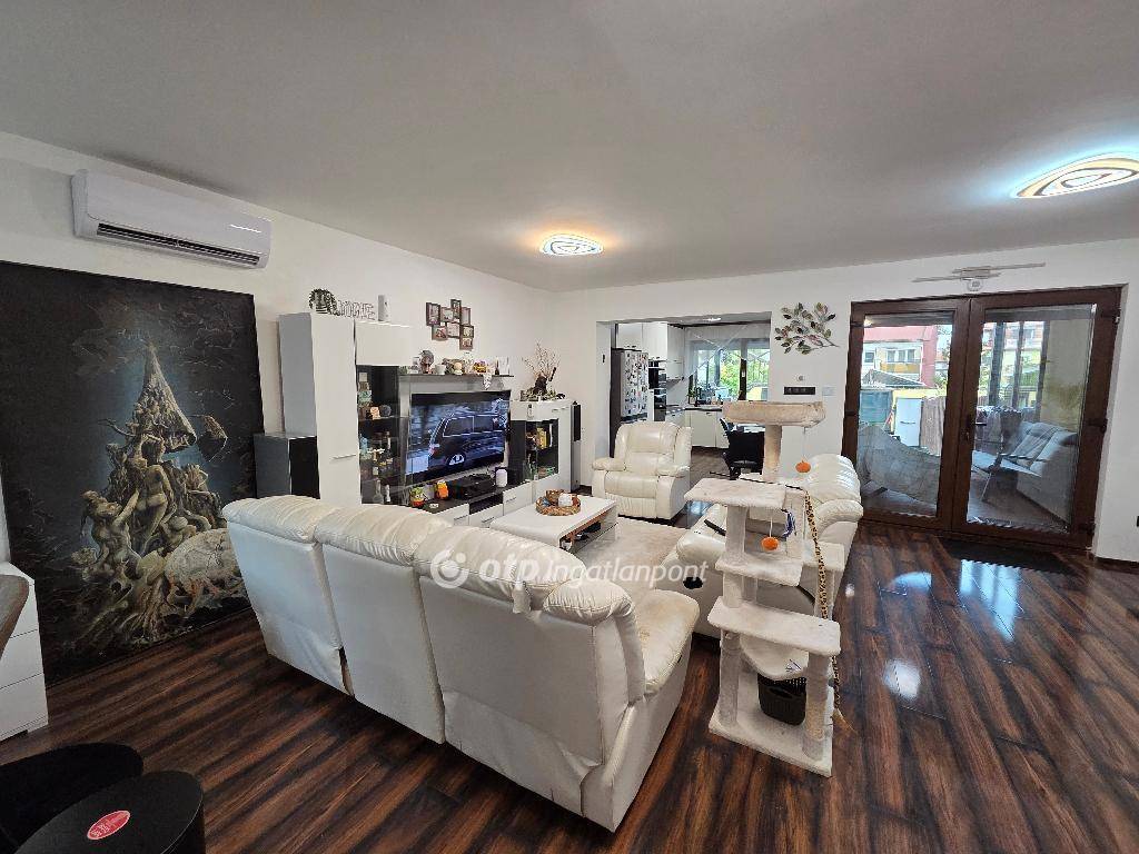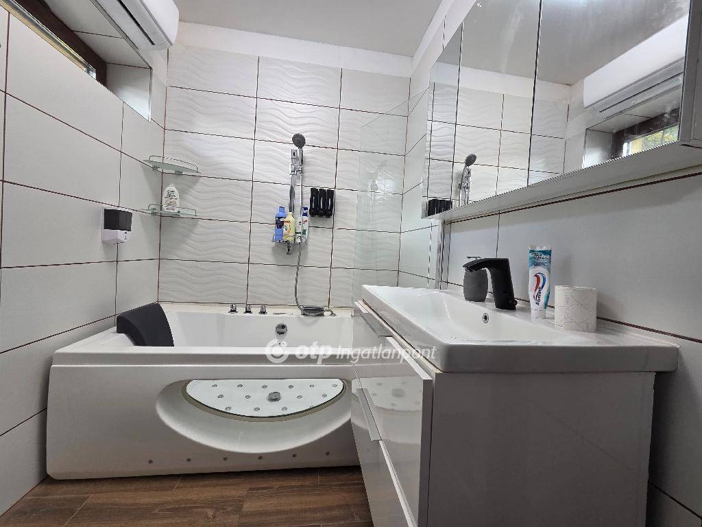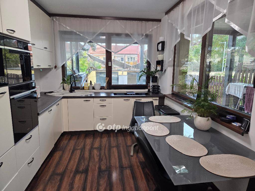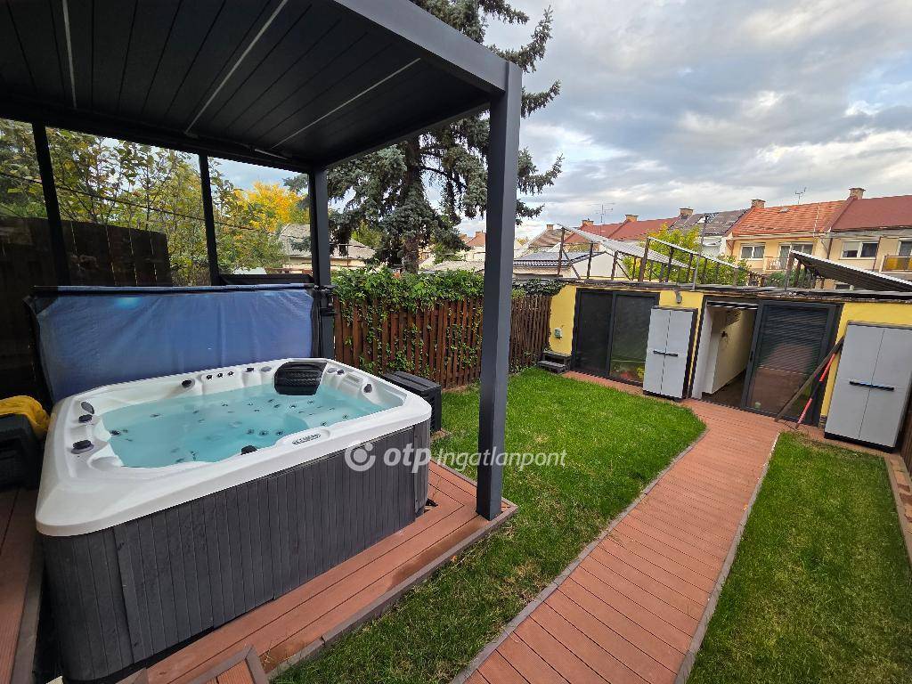 Debrecen, 85 nm-es, sorház 195 nm-es telkekkel eladó. Az ingatlan Újkert csendes kertvárosi részén található, az épült tégla falazatú, szigeteléssel ellátott. A ház belső két szintes. Az alsó szinten konyha, nappali, mosdó található, míg a felső szinten 2 szoba és egy fürdőszoba került kialakításra melyben masszázskád található, a szobából kellemes fedett nyitott teraszra érkezünk. Nyílászárói háromrétegű szigetelt műanyagból készültek elektromos redőnnyel ellátva, fűtéséről hőszivattyús hűtés-fűtés gondoskodik. Parkolás dupla garázsban 36 nm mely, szerelőaknával ellátott. Terasza kertkapcsolatos privát kerttel ellátva, melynek öntözését öntözőrendszer biztosítja az első és a hátsókertben. Jó elrendezésű, szerkezetileg kiváló állapotú, tehermentes ingatlan, amely 4 éve teljes felújításon esett át.