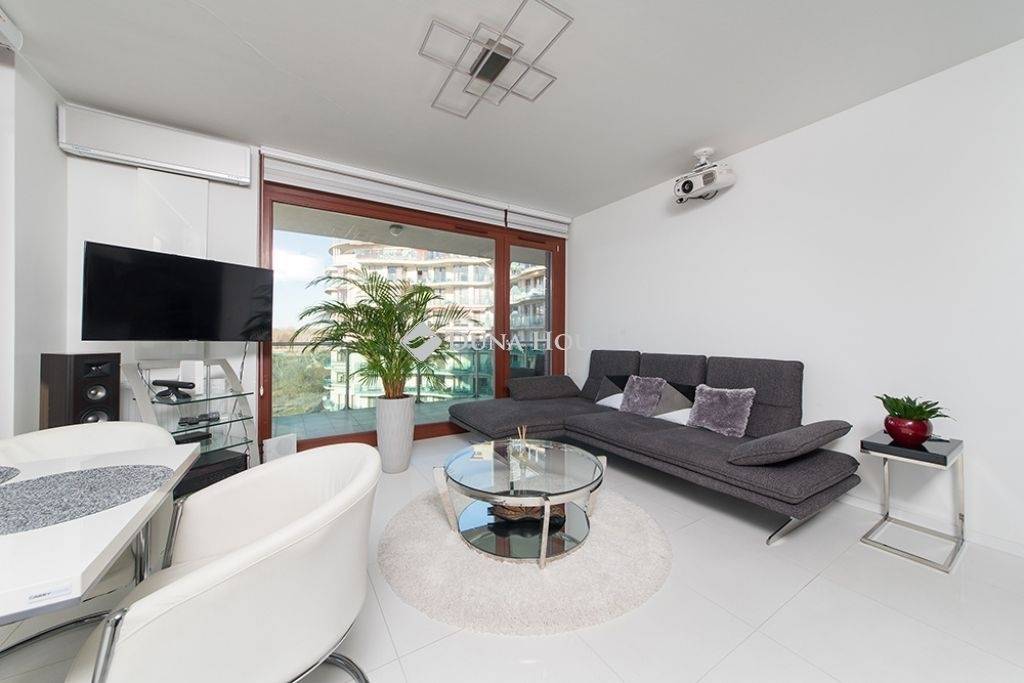 Lenyűgöző kilátással a Budai hegyekre és a Dunára!Marina Parton, panorámás,70 nm alapterületű +38 nm teraszos.,3 szobás,Ny-i tájolású, ízlésesen felújított magas emeleti igényesen bútorozott lakást kínálunk bérbevételre.Az ingatlan 5.emeleten helyezkedik el, amerikai konyhás-nappali és két tágas hálószoba elrendezéssel, fürdővel és külön mellékhelyiséggel. A nagyméretű terasza, valamint a nappali és hálószoba a Dunára néz.A lakás frissen, teljeskörűen, minőségi anyagokkal felújított. Az összes ablak elektromos redőnnyel szerelt, az ajtókon szúnyogháló. A burkolatok és a beépített konyhabútor magas minőségű.Teremgarázs hely és tároló a bérleti díj részét képezi.A társasházban 24 órás portaszolgálat működikA környék nagyon jó közlekedéssel rendelkezik, a komplexumnak BKV hajókikötője is van, így nagyon gyorsan el lehet jutni a város központjába, miközben autóban ülés helyett élvezheti a dunai kilátást. M3 metró megálló a Duna plázánál 4 percre található! A lakópark területén több bevásárlási és fürdőzési lehetőség is van, illetve iskola, óvoda, játszótér, kávézók és étterem, szauna és fitness terem, szolárium, fogorvosi és orvosi rendelő, gyógyszertár stb. is található a közelben. A lakóparkhoz séta távolságban található yacht kikötő és club és a Duna pláza.Ha az ingatlan felkeltette érdeklődését, várom megkeresését elérhetőségeimen.