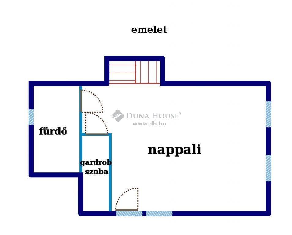 emeleten közlekedő, nappali, gardrób szoba, sarokkádas fürdő + WC