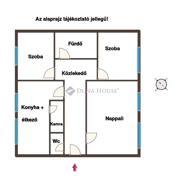 A lakás tájolása dél-keleti, így a természetes fény a délelőtti órákban kellemesen bevilágítja a tereket, de a délutáni hőségben már árnyékos.