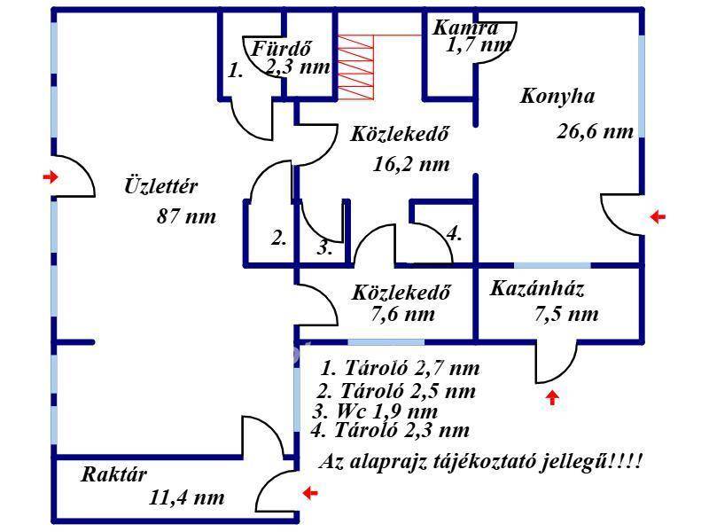 A fennmaradó 105,9 nm egy önálló üzlethelyiség, amely korábban vegyesboltként működött, de funkcióját tekintve szabadon alakítható: kisbolt, pékség, cukrászda, szépségszalon, iroda, szolgáltató egység, rendelő vagy bármilyen más vállalkozás számára.