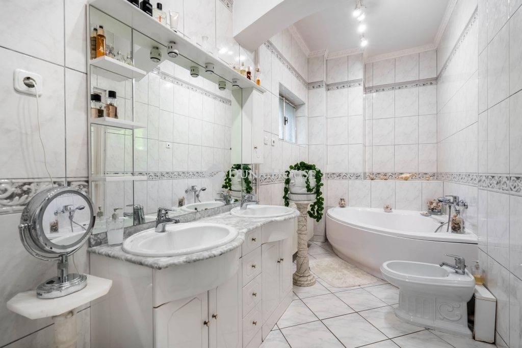 Eladó családi ház Székesfehérváron, Öreghegy szívében!Székesfehérváron, az Öreghegy szívében, a háromágú Millenniumi emlékmű közelében eladó egy impozáns, családi ház. Az ingatlan csendes, családi házas környezetben található, ahol a nyugalom és a madárcsicsergés garantált.A bruttó 474 m2-es (nettó 338 m2) ház egy 1421 m2-es, parkosított telken helyezkedik el, amely két utcára nyílik, és többállásos parkolóval rendelkezik.Az ingatlan 2006-ban teljes felújításon és bővítésen esett át. A falak Porotherm 30-as téglából épültek, 8 cm-es külső hőszigeteléssel. Két külön bejáratú lakás található benne, mindegyik külön gázkazánnal és gázórával felszerelve, így az épület energiafelhasználása belefér a rezsicsökkentett kedvezményes árkategóriába.A ház modern felszereltséggel rendelkezik, mint például kamera rendszer, automata öntözőrendszer, robotfűnyírók és okosotthon vezérlő. A kertben fenyőfák, óriás virágú hibiszkuszok, hortenziák, kerti pavilon, sütögető, kerti tó koi pontyokkal és tavirózsákkal teszik még vonzóbbá az ingatlant.Az első és a második szint külön bejárattal rendelkezik, két teljesen különálló lakrészt biztosítva, amelyeket igény szerint egybe lehet nyitni.Pinceszinten:- garázs- tároló- fürdőszoba- hobbi szoba- szauna- bár és borozóElső szinten:- 45 m2-es nappali terasz kapcsolattal- étkező- konyha- fürdőszoba- hálószoba- emeleti lakás bejárata- garázs- tároló helyiségFelső szinten:- 26,6 m2-es nappali erkély kapcsolattal- 2 hálószoba- gardróbszoba- fürdőszoba- WC- konyha- étkező- kamra- háztartási helyiség- panorámás erkélyEz az ingatlan alkalmas nagy családok számára, kényelmes és biztonságos otthont kínálva. Kiváló választás két generáció együttélésére is, hiszen két külön lakás található benne.Ezen kívül ideális helyszín lehet vállalkozások, például ügyvédi irodák vagy magánorvosi rendelők számára.Patinás, elegáns helyen lehet vállalkozása és egyben külön nyugalmas élettere is.Ne hagyja ki ezt a ritka lehetőséget, hogy egy ilyen igényes és folyamatosan karbantartott ingatlan tulajdonosa legyen Székesfehérvár egyik legkedveltebb részén!Amennyiben felkeltette érdeklődését ez az ingatlan és szeretné közelebbről is megismerni, kérem vegye fel velem a kapcsolatot a részletek és az időpont egyeztetése kapcsán!A két lakás külön-külön is megvásárolható, alapterületük egyenként NETTÓ 160m2, áruk 185 000 000 Ft/ lakás.