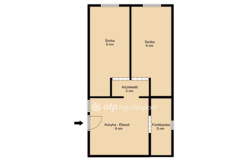 A ház 35 nm alapterületű, mely a tetőtér beépítésével további kb. 30 nm-rel bővíthető.