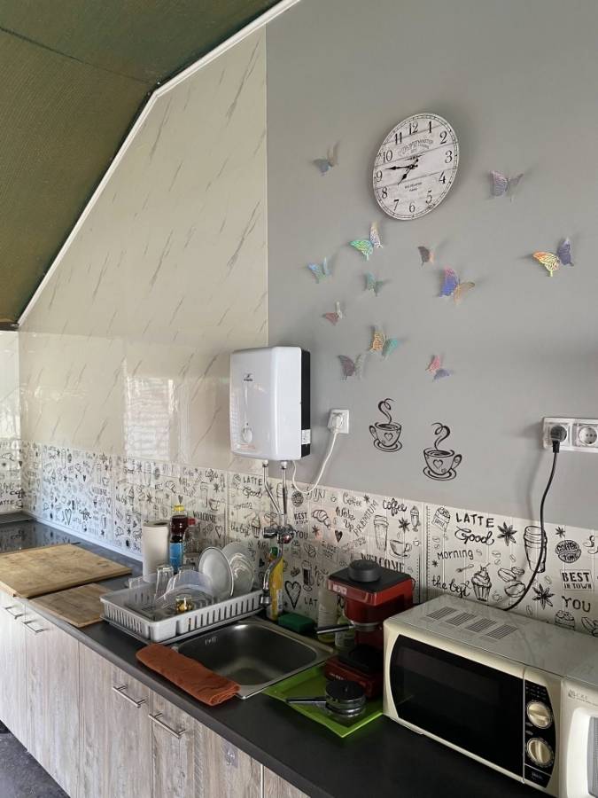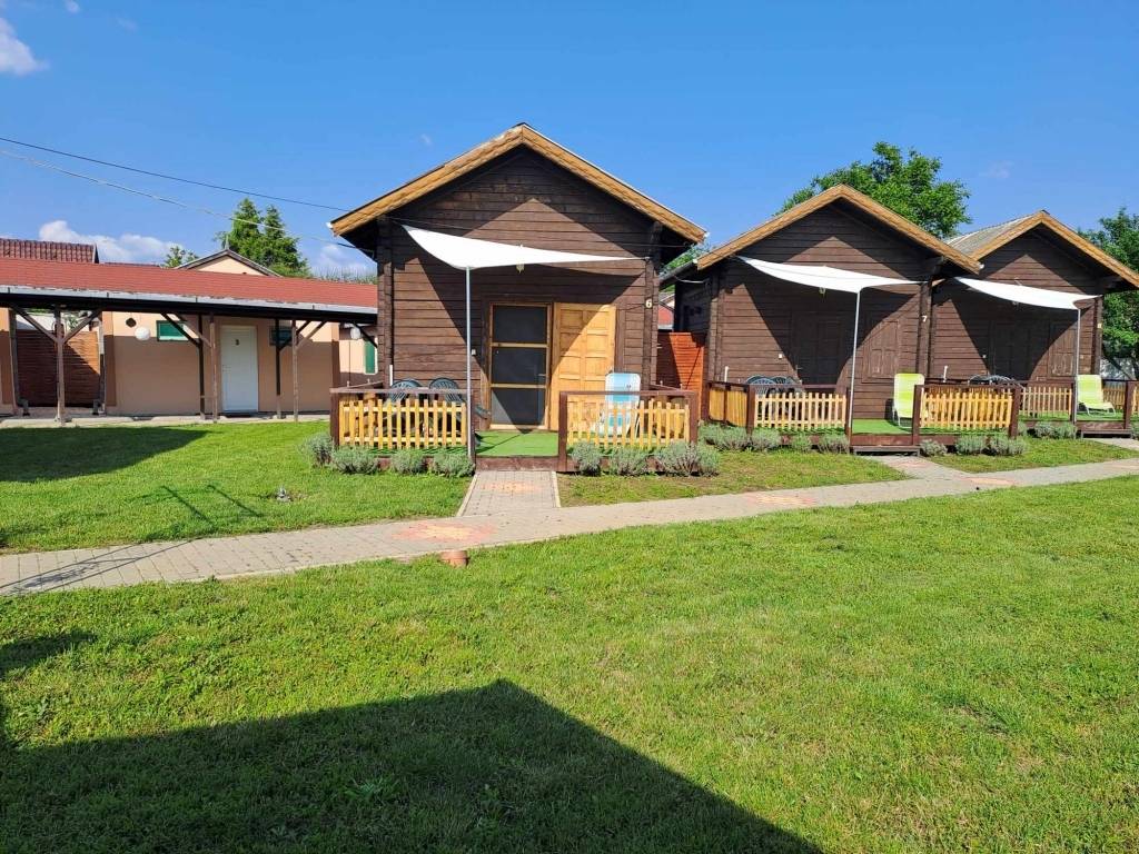 A területen öt darab 30 nm-es apartmanház található, mindegyik saját fürdővel, külön WC-vel, teakonyhával, nappalival és hálósarokkal, valamint terasszal és 3,5 kW-os hűtő-fűtő klímával. Emellett három darab galériás gerendaház is helyet kapott, 25 nm alapterülettel és 12 nm-es terasszal, melyek négy fő elszállásolására alkalmasak, saját fürdővel, WC-vel és teakonyhával, 2,6 kW-os klímával felszerelve. A vendégek kényelmét tovább növeli egy tágas, közösségi tér teljesen felszerelt konyhával, valamint árnyékos sátorhelyek, külön női-férfi zuhanyzók, mosókonyha, bográcsozó és sütögetőhely.