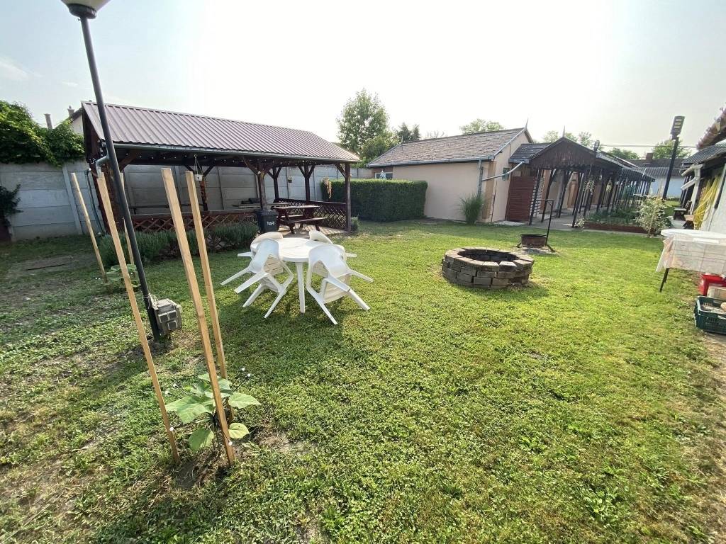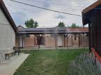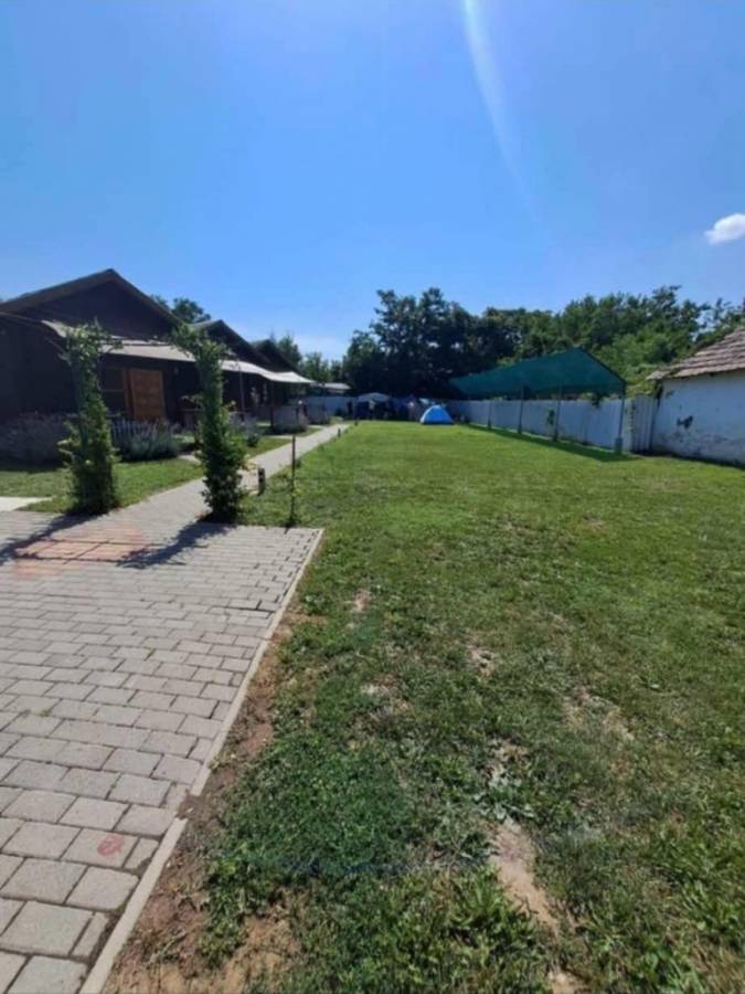 A hangulatot tovább gazdagítja egy régi parasztház, amely jelenleg raktárként és szervizként funkcionál, illetve egy melléképület, ahol további tárolási lehetőség biztosított. A parasztház teljes felújítást igényel vagy igény esetén bontandó. A kemping elektromos árammal (3×32A) és 8 kW-os saját napelemrendszerrel rendelkezik, a fűtés-hűtés minden egységben elektromosan, klímával megoldott. A pince praktikus tárolási lehetőséget kínál, az udvar pedig gondozott, részben térkövezett és könnyen karbantartható.