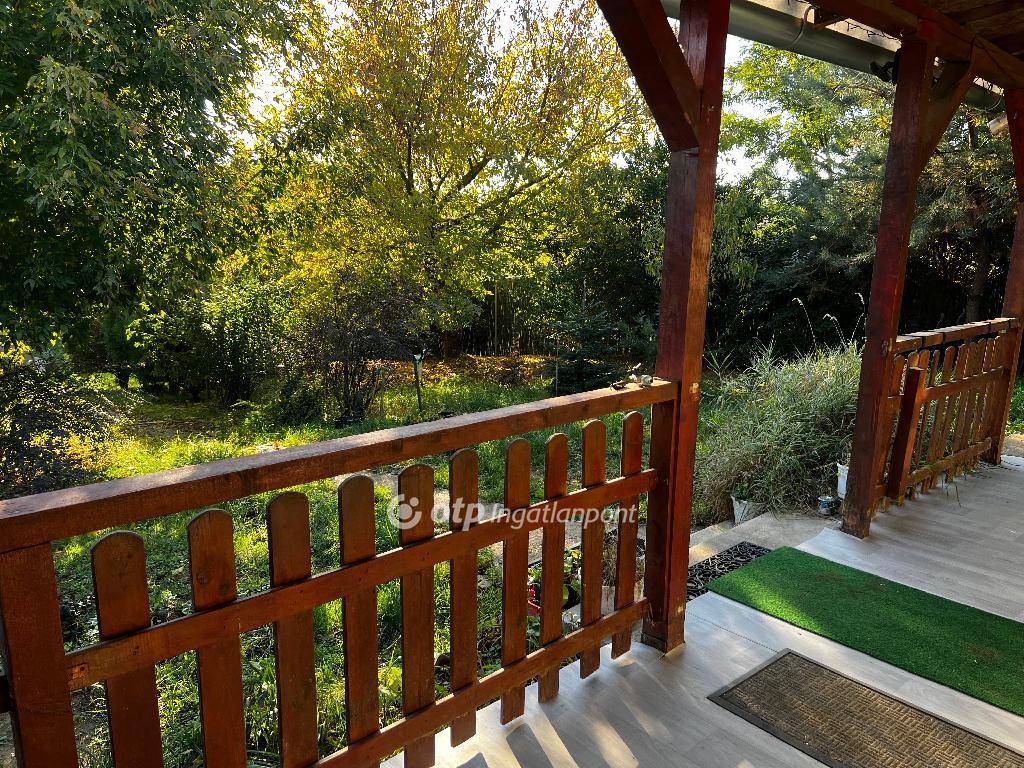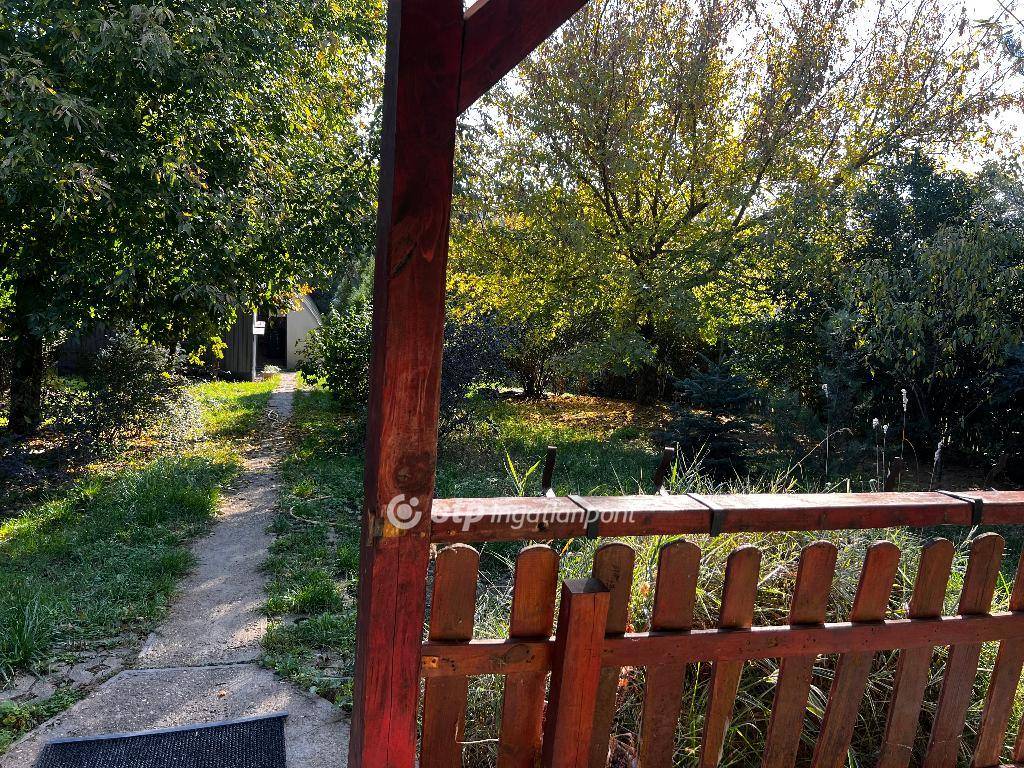 A zárt, 853 m2-es telek rendezett, fákkal és bokrokkal szegélyezett, igazi madárcsicsergős, nyugalmas környezet, ahol jólesik megpihenni. A garázs előtt több autó számára is beállási lehetőség adott, a mélyfúrt kút és a több vízkiállás pedig a kerti munkát is megkönnyíti.