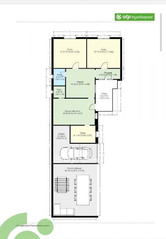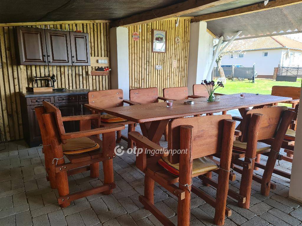 A ház elosztása kifejezetten családbarát: három külön nyíló szoba, egy nappali, konyha-étkező, fürdőszoba, előszoba, kamra, valamint egy fedett terasz biztosítja a mindennapi kényelmet és a zavartalan együttélést. A praktikumot tovább növeli a garázs és a házhoz tartozó 40 m2-es fedett dühöngő, amely nagyobb társaság fogadására is kiválóan alkalmas.