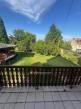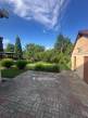 A kert rendezett, díszfákkal, gyümölcsfákkal, tujákkal díszített.