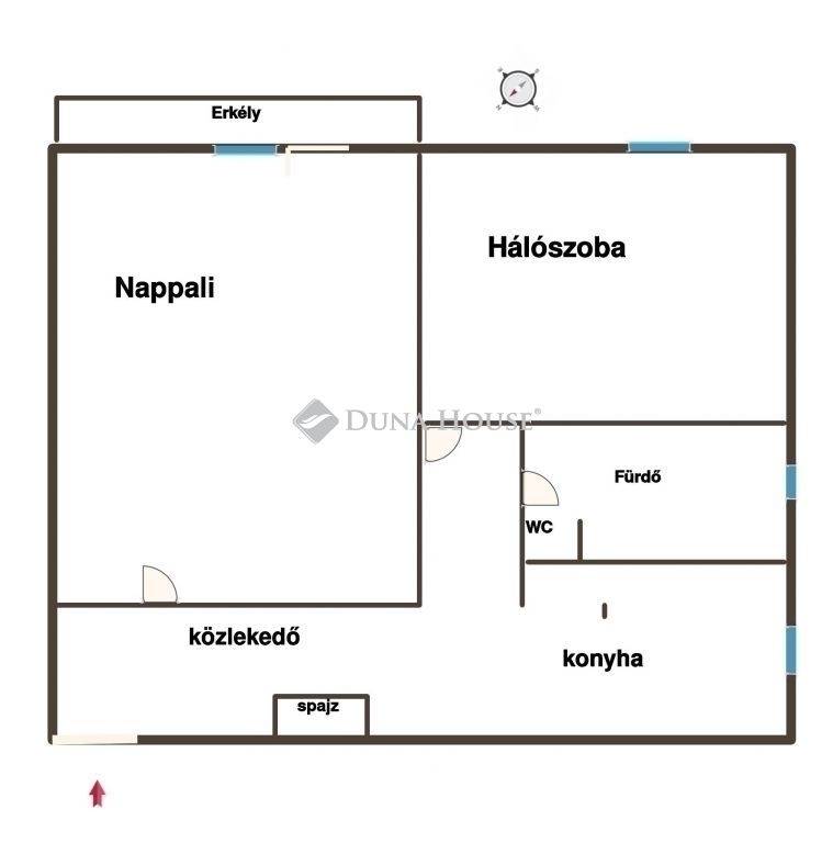Elosztás: világos, jól szeparált terek, 2 kényelmes méretű szoba