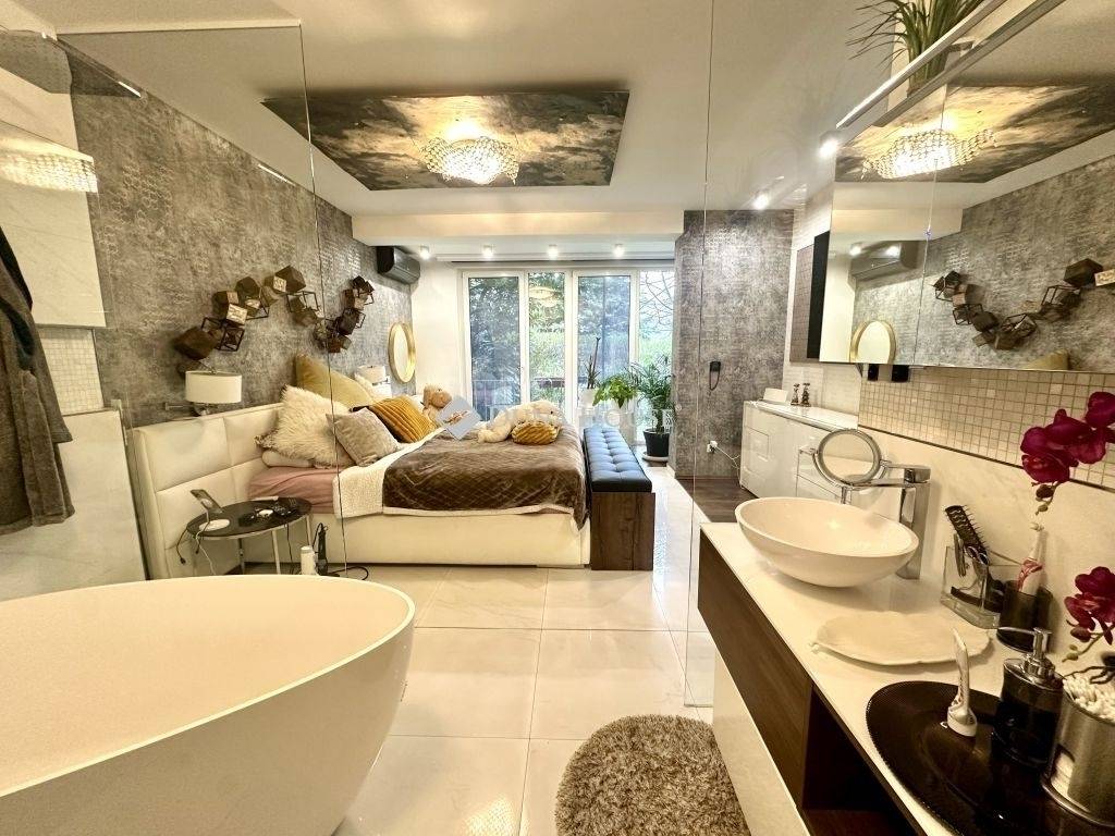 Álmai otthona várja a Római-parton!Ne hagyja ki ezt a kivételes lehetőséget! Eladásra kínálunk egy impozáns, tágas lakást Budapest egyik legkeresettebb zöldövezeti részén, a csendes és nyugodt Római-parton, mindössze egy rövid sétára a Duna partjától. A lakás egy prémium lakóparkban található, ahol biztonságot és kényelmet garantál a 24 órás portaszolgálat, valamint a sorompós beléptető rendszer.A lakás főbb jellemzői:105 m² fényárban úszó lakótérAmerikai konyhás nappali, 2 hálószoba, 2 fürdőszoba, tágas étkező (mely akár +1 hálószobává alakítható)48 m²-es terasz, amely télen is használható, mivel be van építve és nyitható üvegfalas80 m²-es, kizárólagos használatú kert – ideális pihenéshez, kikapcsolódáshoz2021-es felújítás prémium anyagokkalKültéri medence, játszótér és szépen karbantartott belső udvar grillezési lehetőséggelA lakópark a természet ölelésében helyezkedik el, így a friss levegő és a zöld környezet garantált. Az ingatlan a 2013-as árvíz során sem volt érintett, biztonságos és nyugodt környezetet biztosít.Kiegészítő szolgáltatások:Mélygarázs vagy felszíni parkolóhely vásárolható (tárolóval)A vételár tartalmazza az összes beépített bútort és konyhai gépeketPrémium klímaberendezés és egyéb magas színvonalú beépített elektronikai eszközökA jakuzzi igény szerint elérhetőA környéken: Iskola, óvoda, hipermarket és közvetlen buszjárat (106-os busz) a lakópark előtt, kényelmes közlekedést biztosítva.Ár: 1,550 M Ft/m²Ne hagyja ki ezt a ritka ajánlatot! Az ingatlan ideális választás azok számára, akik a természet közelségében, mégis a főváros szívében szeretnének élni. Az álomotthon várja Önt!Bővebb információval és megtekintéssel kapcsolatban keressen bizalommal.