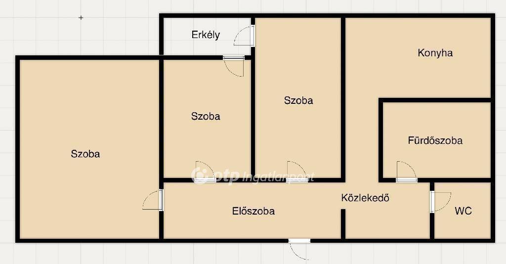 A lakás praktikus elrendezésű: a három szoba külön nyílik, ami ideálissá teszi több bérlő vagy egy nagyobb család számára is. A konyha melletti szoba jelenleg gipszkarton fallal van leválasztva, de igény esetén könnyen visszaalakítható egy nagy, amerikai konyhás nappalivá. A fürdőszoba és a WC külön helyiségben található. A konyha gépesített ? főzőlap, sütő, elszívó, mosogatógép, hűtő és mikró is rendelkezésre áll. Az egyik átjáróban tágas, tükrös gardróbszekrény biztosít elegendő tárolóhelyet.