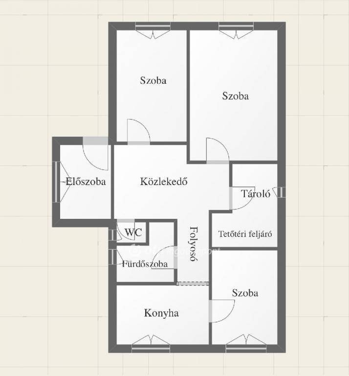 A földszinten három különnyíló szoba, előszoba, konyha, fürdőszoba, külön WC és tároló található. A helyiségek rugalmasan alakíthatók - ha valaki nagyobb terekre vágyik, akár a két nagyobb szoba összenyitásával tágas nappali is kialakítható, míg a tetőtérben akár öt további, jól használható szoba is megvalósítható. Ez az otthon valóban számtalan lehetőséget rejt.