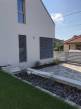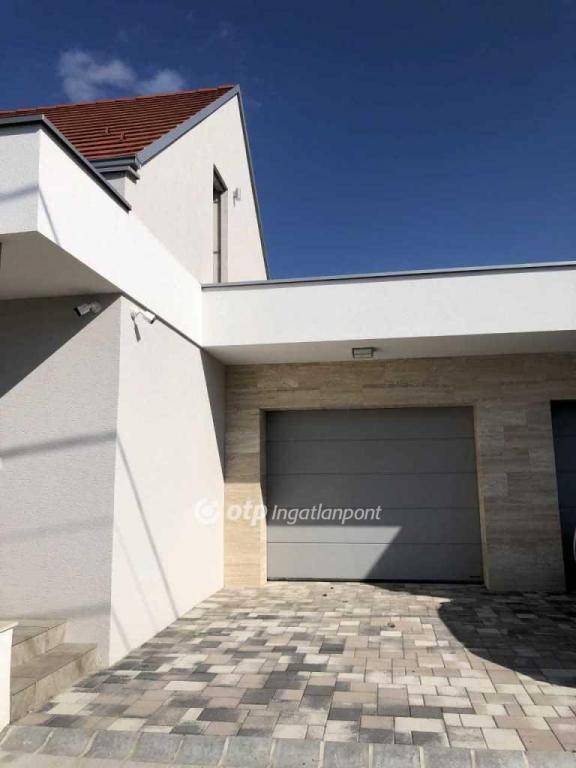 Pannonhalma település csendes, átmenő forgalomtól mentes utcájában eladásra kínálom ezt a 162 nm alapterületű, nappali+4 szobás, kétszintes, prémium kategóriás iker családi házat. Az ingatlan, amely 2025-ben épült a legkorszerűbb műszaki és esztétikai kivitellel, dupla komfortot biztosít. Belső elrendezése praktikus, jó ízléssel, minimál stílusban kialakított. Az előszobából belépve a földszinti lakótérben egy közlekedőn keresztül tágas nappali+konyha+étkező fogad bennünket. A konyha beépített minőségi konyhabútorral és háztartási gépekkel van felszerelve. Az előszobában nagy beépített gardrób szekrény található. Az előszobából nyílik a vendég WC, egy nagy hálószoba, mellette fürdőszoba WC-el. Ugyancsak innen nyílik a háztartási helyiség a fűtési rendszer belső egységével. A lépcső alatti tér kihasználásával tároló került kialakításra. A nappaliból és a konyhából kilépve kertkapcsolatos terasz biztosítja a kellemes pihenést. Az emeleten két tágas hálószoba, 29 nm-s közösségi tér és egy tágas káddal és tusolóval beépített fürdőszoba került kialakításra. A közösségi térből nyíló tetőteraszról pazar rálátás van a Pannonhalmi apátságra. Minden helyisége minőségi burkolattal van ellátva. A nyílászárók 3 rétegű hő- és hangszigetelt ablakok, elektromos vezérlésű redőnnyel. A megújuló energiával ellátott épület fűtése hőszivattyús rendszerrel működik, padló és mennyezet fűtéssel-hűtéssel. Az épületben korszerű biztonsági rendszer került kiépítésre. A házhoz kapcsolódik egy 23 nm-s garázs, amely a lakótérből is elérhető. A garázs előtt térkövezett, részben fedett kocsi beálló található. Az ingatlanhoz tartozó körbekerített telek hányad 470 nm, igényesen parkosított, automata öntözővel ellátott. További kérdés esetén, vagy megtekintéssel kapcsolatban kérem, keressen bizalommal!