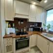 Konyha-étkező beépített szekrényekkel, gépekkel.