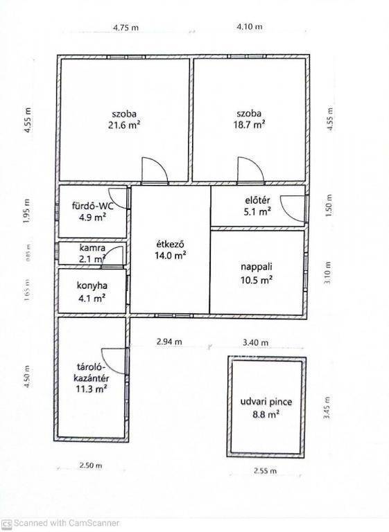 - Amerikai konyhás nappali + 2 külön nyíló szoba