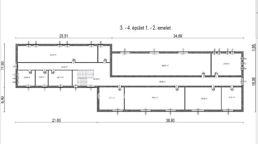 - 673 m2-es ötszintes vasbeton épülettel amelyben kialakítható: