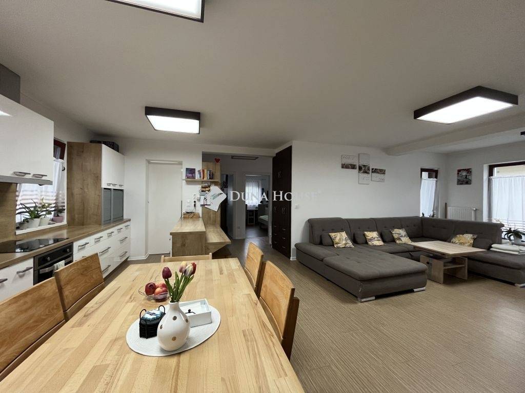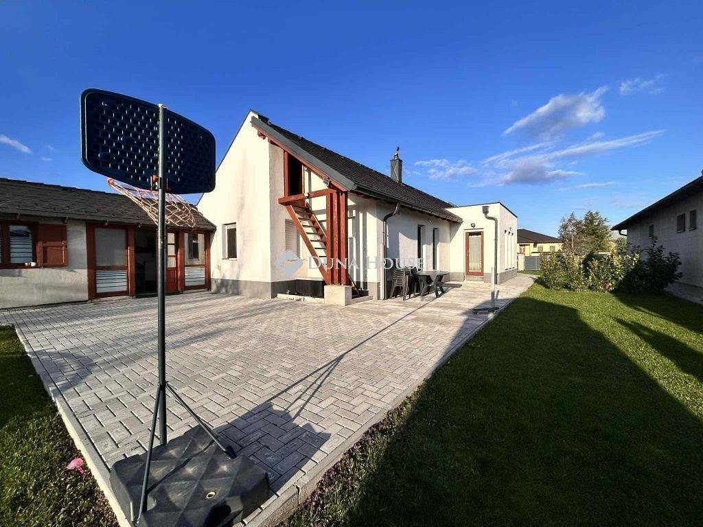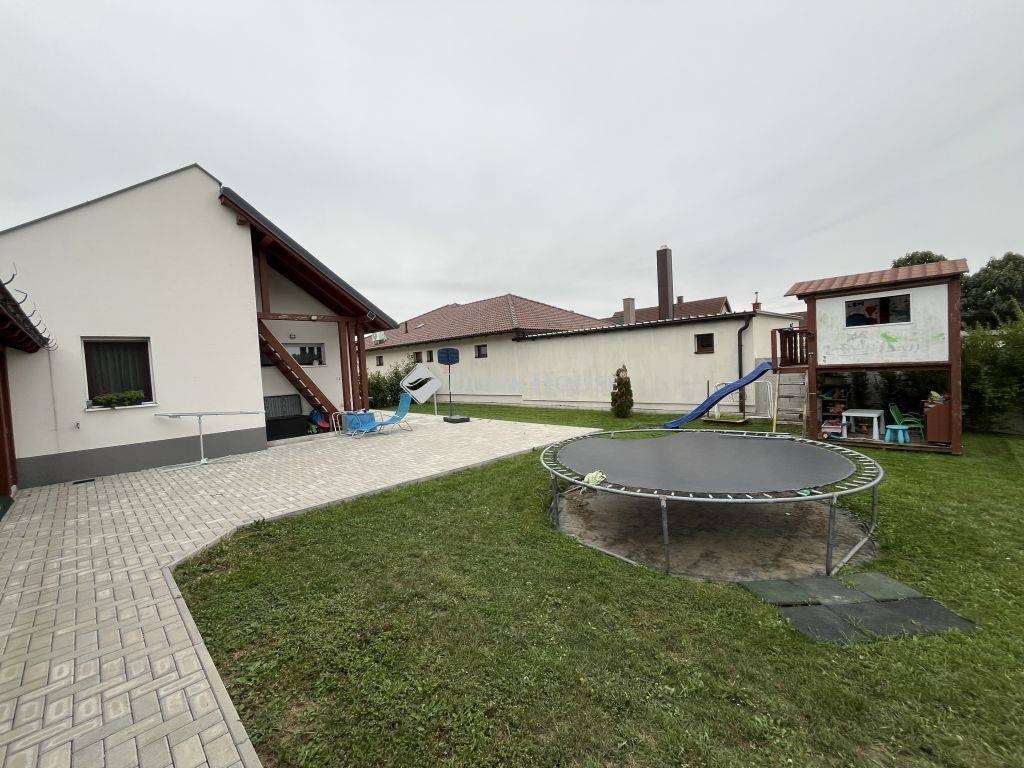 Eladó modern családi ház Szárföldön! Tágas terek, korszerű megoldások, nagy telek!Szárföld (a település Györ-Moson-Sopron megyében, a 85-ös út Csorna-Kapuvár közötti szakaszán található) dinamikusan fejlődő, csendes részén kínálunk megvételre egy 2018-ban épült, 132 m²-es, földszintes családi házat, amely modern kialakításával és kényelmes elrendezésével ideális választás családok számára.A 900 m²-es, gondozott telek bőséges teret kínál pihenésre, kertészkedésre vagy akár további fejlesztésre is. A telken melléképület, kerti csapkiállás és fúrt kút is rendelkezésre áll az öntözéshez.A ház tégla falazatú, fafödémes, és fa tetőszerkezettel épült, nem beépíthető padlástérrel.Belső helyiségei: amerikai konyhás nappali-étkező, 4 szoba, fürdőszoba, külön mellékhelyiség, háztartási helyiség, terasz és tároló kialakításFűtéséről többféle rendszer gondoskodik: hangulatos vízteres pellet tüzelésű kandalló, villanykazána hőleadás radiátorokon keresztül történik, a fürdőszobában pedig elektromos padlófűtés biztosít extra komfortot.A telek előtt gázcsonk is megtalálható, így igény esetén más fűtési alternatíva is könnyedén kialakítható.A modern, gépesített konyha a mindennapokat teszi kényelmessé.Ez az ingatlan a minőségi kivitelezés, a praktikus elrendezés és a gazdaságos fenntartás tökéletes kombinációját kínálja egy nyugodt, családbarát környezetben.LOKÁCIÓ:Szárföld községen a 85. számú főút vezet át, így könnyedén és gyorsan elérhető autóval vagy tömegközlekedéssel a szomszédos Kapuvár és Csorna városok valamint az M85 gyorsforgalmi út is.Az óvodások és az alsó tagozatos gyermekek számára a községben az oktatás-nevelés megoldott. Az egészségügyi ellátást háziorvos biztosítja.Ne hagyja ki ezt a remek lehetőséget keressen bizalommal további információért vagy megtekintés egyeztetéséhez!